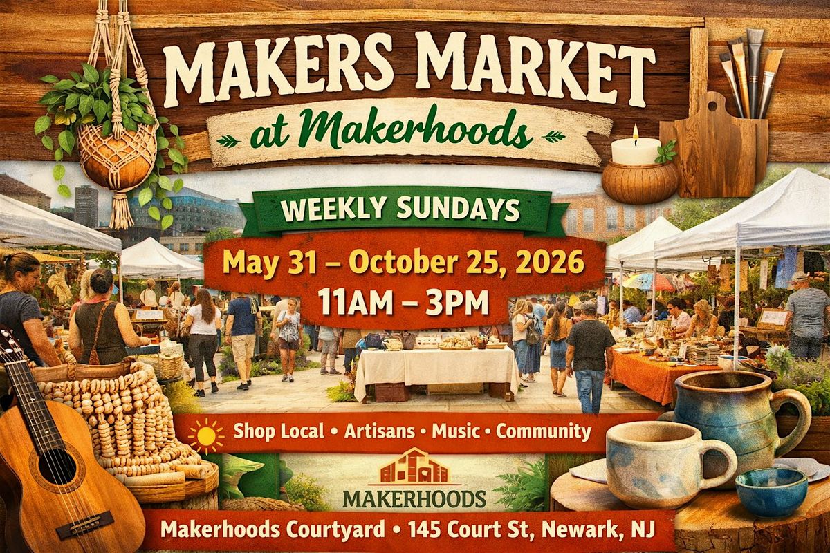Spend your Sundays at the Makers Market at Makerhoods—a vibrant, open-air marketplace celebrating local creativity, community, and entrepreneurship in the heart of Newark.
