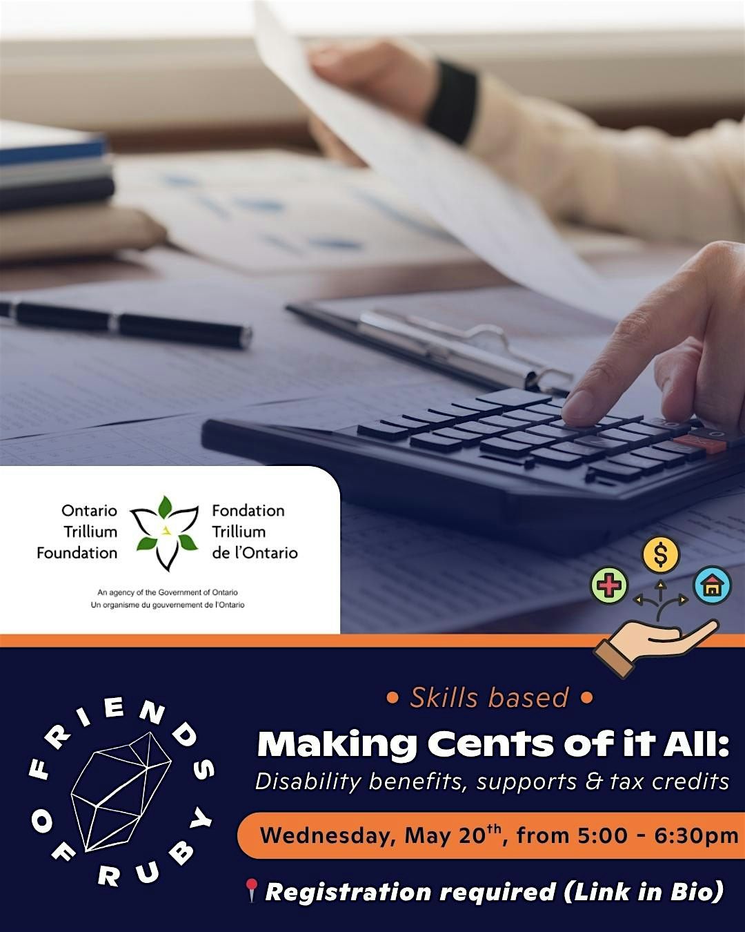 Making Cents of it All: Disability benefits, supports and tax credits - May 20th 5-6:30pm