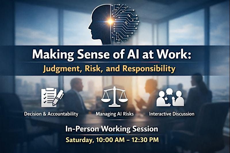 This in-person session is a professional working session focused on how AI intersects with human judgment, responsibility, and risk inside real organizations. Rather than teaching tools or promoting adoption, the session helps participants think clearly about where decisions still belong with people—and what changes when they do not.