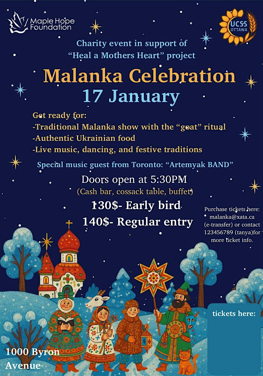 Join us for a vibrant Malanka Celebration on January 17th, a charity event in support of the "Heal a Mother's Heart" project, organized by Ukrainian Canadian Social Services Ottawa.