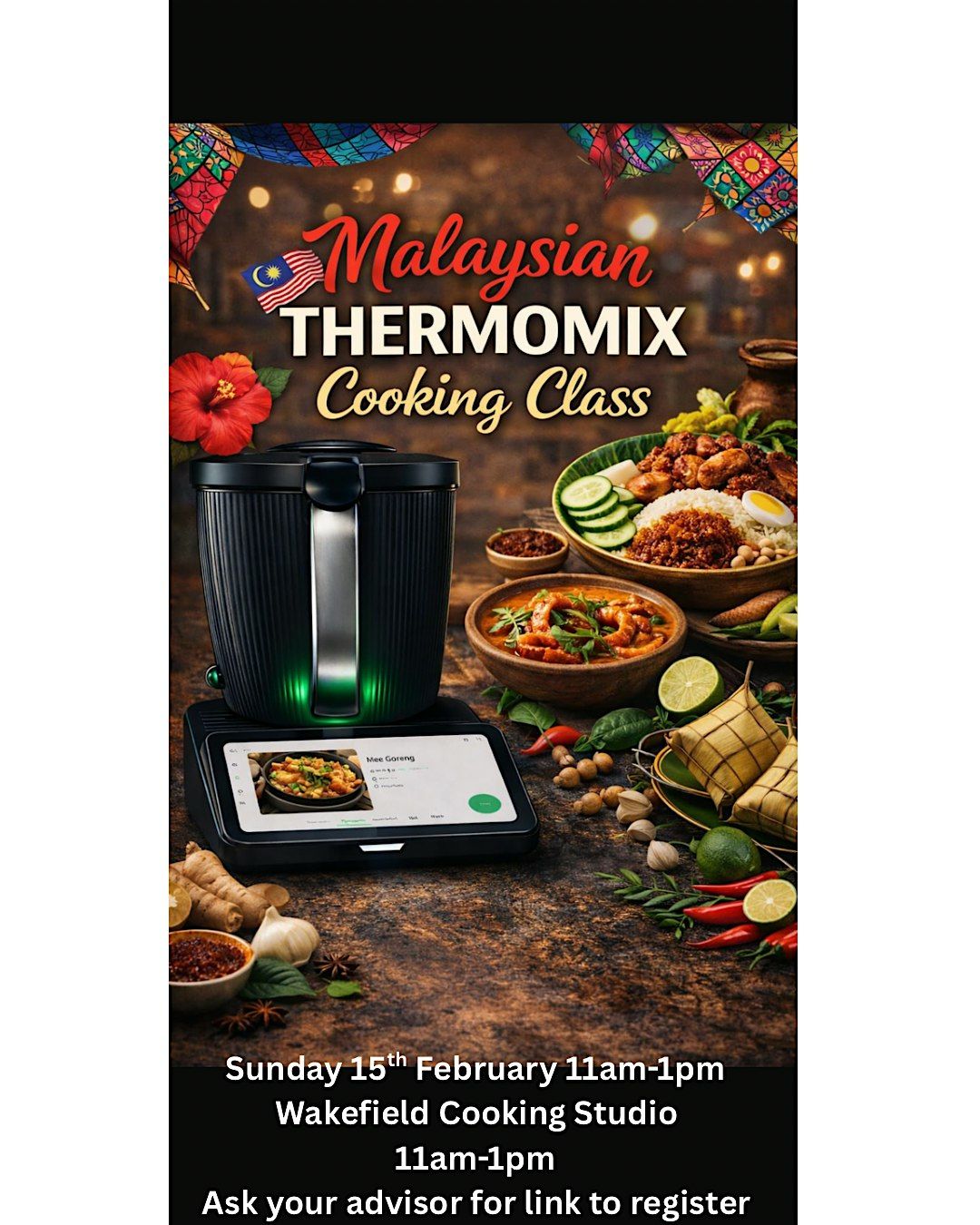 Hey food lovers! Join us for a fun Malaysian Cooking Class where you'll observe some authentic dishes being created using the Thermomix. This is an in-person event, so get ready to roll up your sleeves and dive into the flavors of Malaysia. Perfect for anyone who loves cooking or wants to try something new! Please advise us of any food allergies at the time of booking.