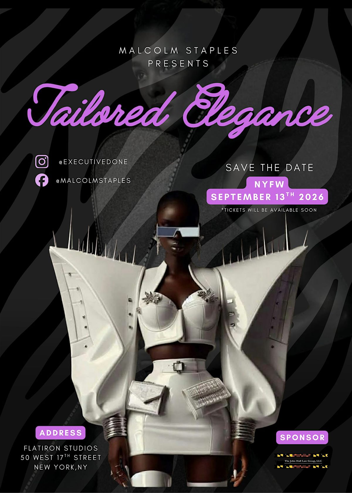 The show will take place at the luxurious Flat Iron Studios at 50 West 17th Street in the heart of Chelsea NYC. Come be a part of significant fashion influencers, bloggers and other fashion enthusiasts during this spectacle. You witness first hand the beauty of Tailored Elegance.