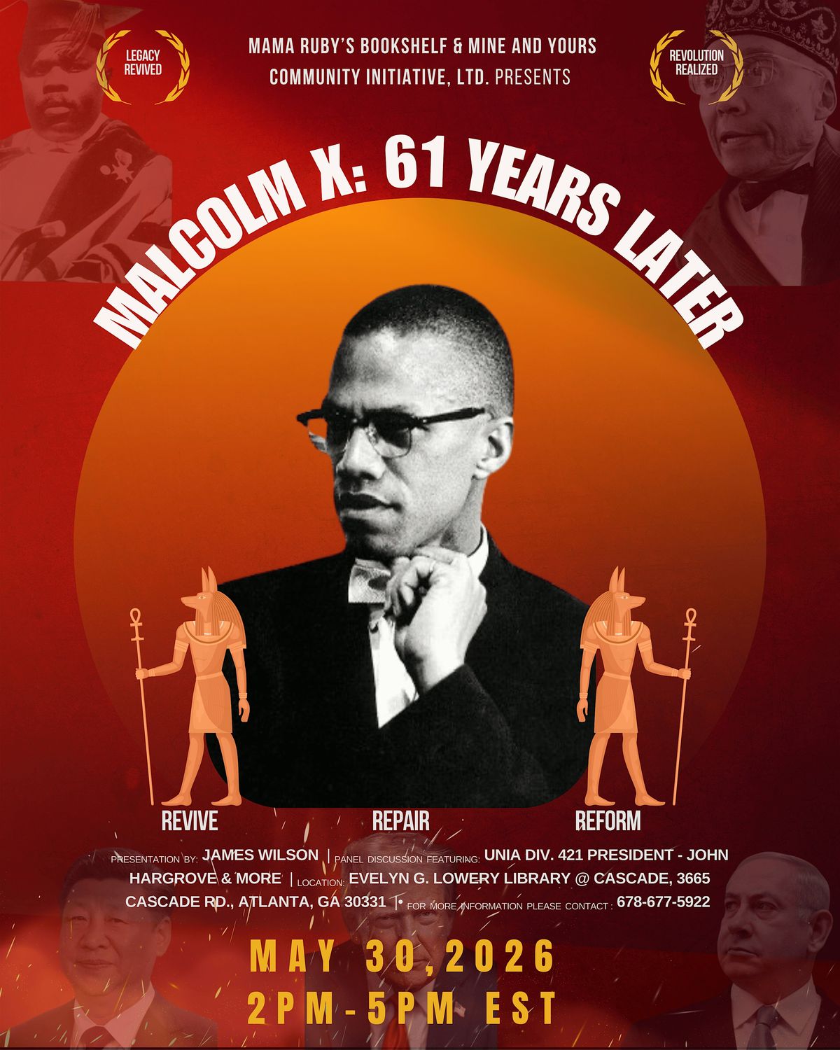 Come join us as we revisit the legacy of Minister Malcolm X and what his life meant to an ever so changing world through a presentation by author and publisher, James Wilson, Jr.