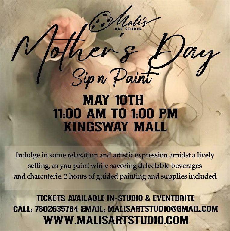Get ready for a fun and chill in-person event at Mali's Art Studio! Celebrate Mother's Day by sipping your favorite drink while painting a beautiful masterpiece. Whether you’re a beginner or a pro, this is the perfect way to relax, laugh, and create memories. Bring your mom, bestie, or come solo to enjoy art, good vibes, and some creativity. Don’t miss out on this special Sip n Paint experience!