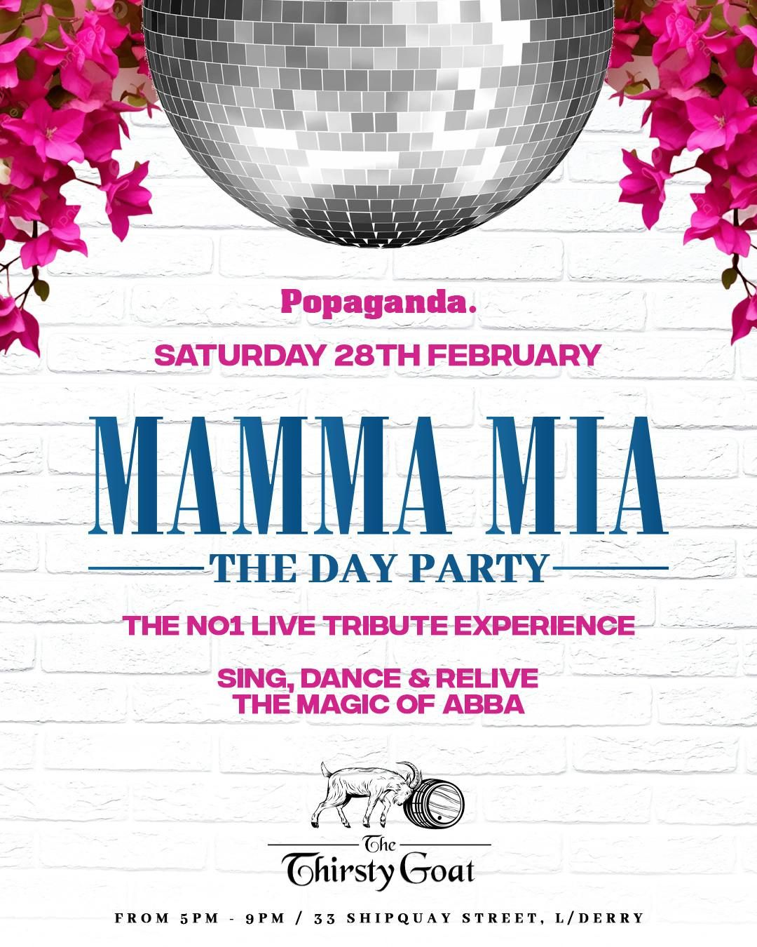 #MammaMiaDayParty #PopagandaEvents #DancingQueens #DiscoAllDay #ThirstyGoat #DerryEvents #FeelGoodVibes #ABBAForever