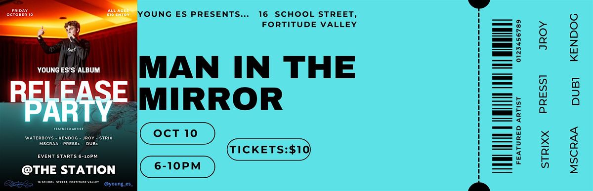 Join us for Young Es' Man In The Mirror album release party in Brisbane. Experence the full album live with fearured artists, DJ sets,exclusive merch and good vibes all night. This is more than a party, its the start of something big. Limited tickets, high energy and a night you won't forget