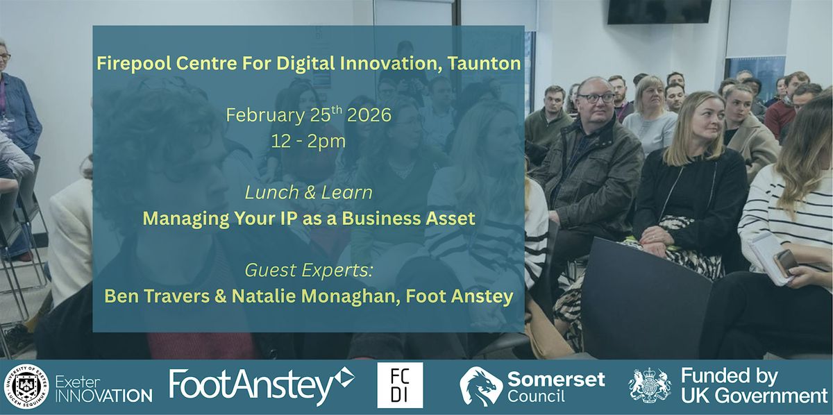 Hosted by the Somerset Innovation Hub, with insights from experts Ben Travers & Natalie Monaghan from Foot Anstey's IP practice, this session is designed to be useful, accessible and directly relevant to growing businesses.