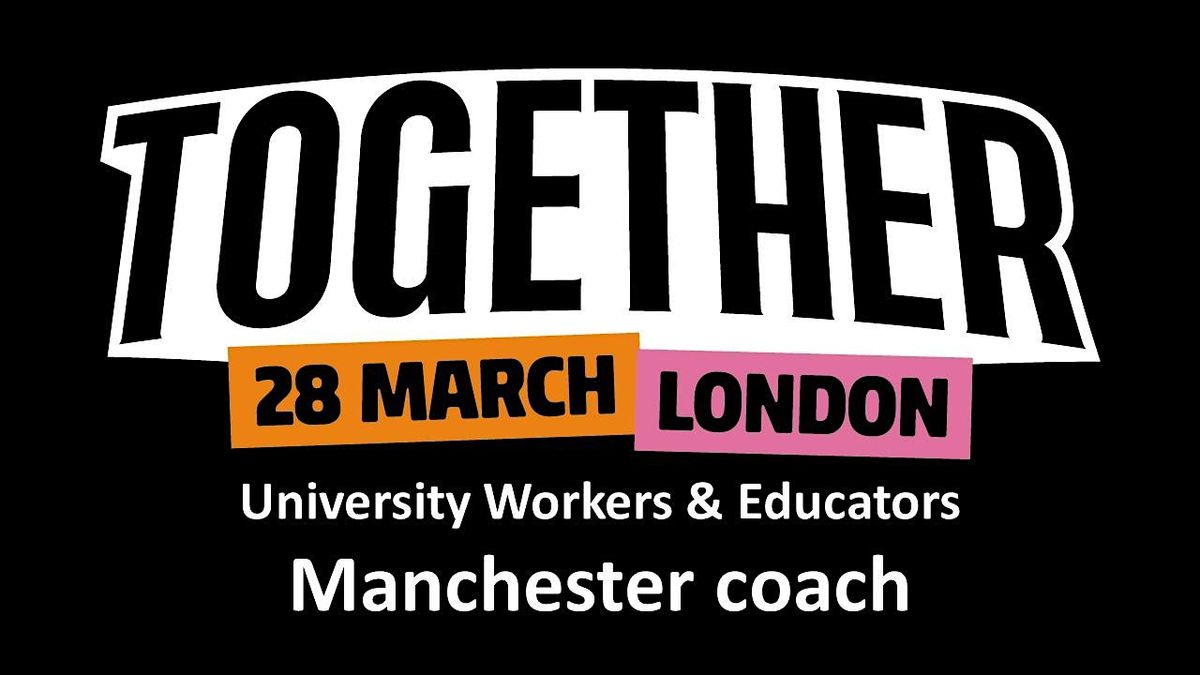 Together Against the Far Right (28th March 2026) is a display of unity in the face of a growing and increasingly confident far-right and fascist movement in the streets and ballot boxes in the UK (Together Alliance). University workers and educators from Manchester are sending a delegation by coach, join us!