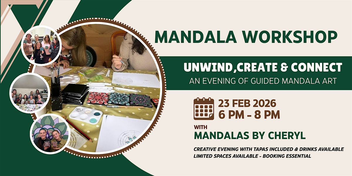Join mandala artist Cheryl Harte for a relaxing and creative evening of mandala dot painting at The Hendrick Hotel, Smithfield. This beginner-friendly workshop is designed to help you slow down, switch off, and explore the calming beauty of mandalas in a welcoming and social setting.