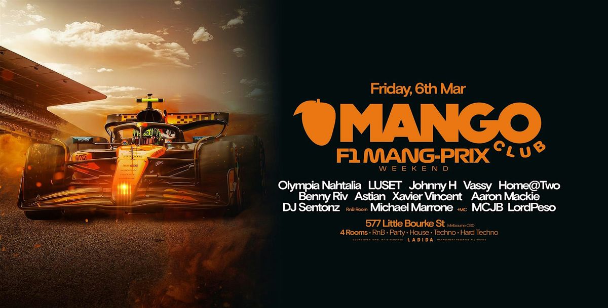 It’s lights out & away we go.. This Friday, Mango Club rolls out the ‘F1 MANG-PRIX’ in honour of the 88th Australian Grand Prix. As the city shifts into race mode, we’re gearing up for a high-speed night of RnB, Party, House, Techno & Hard Techno — all under one roof. Race in early. You never know who might be in attendance.. 🏎️
