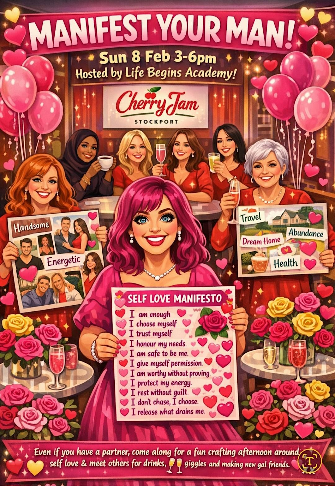 Join us for an empowering afternoon of self-love, manifestation, and connection at Cherry Jam Stockport! ♡