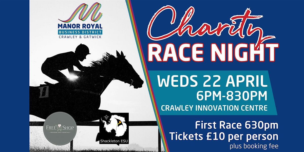 The Manor Royal BID Charity Horse Racing Night is a lively, social fundraising event that brings together the excitement of the racetrack with the atmosphere of a party, raising money for Free Shop Crawley and Shackleton Explorers.