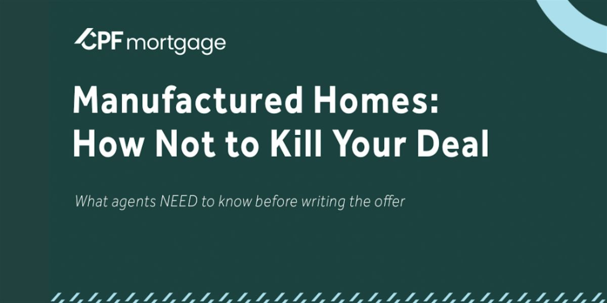 Manufactured home transactions come with unique financing rules that can easily derail a deal. In this session, CPF Mortgage will break down the most common mistakes agents make, key guidelines you need to know, and practical strategies to keep manufactured home deals alive from contract to closing. Perfect for agents who want fewer surprises and more successful closings.