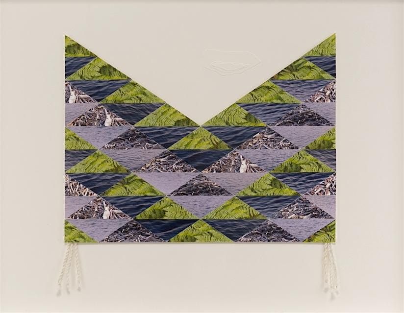 Image Credit: Epiphany Couch, I Dream of Woolly Dogs (Cameron Island), 2025, Hand-pieced fine-art photoprint quilt, embossed Rives paper, sheeps wool, 16 1/4 x 21 1/4 inches, framed, Courtesy of the artist