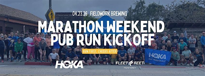 Start race weekend the right way at the 2026 Marathon Weekend Pub Run Kickoff, hosted by Fleet Feet Monterey in partnership with HOKA. Gather with fellow runners, soak in the electric race-weekend atmosphere, and take the latest HOKA shoes for a spin during a fun and social run through Monterey.