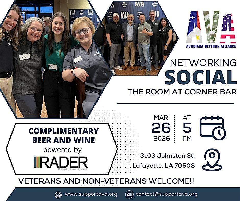 March 2026 AVA Networking Social at The Room at Corner Bar Lafayette!