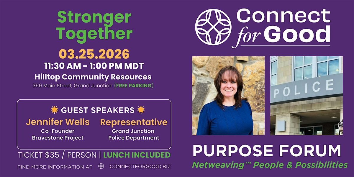 As always, the Connect for Good Purpose Forum is a solution-focused space for Netweaving™—bringing people, ideas, and resources together to strengthen community life, even around challenging topics. This conversation invites us to consider how we can each show up in meaningful ways, knowing that service and impact take many forms.