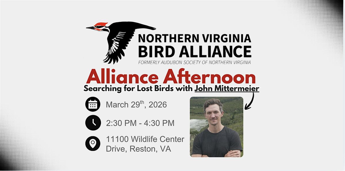 NVBA staff and the Board of Directors will kick off the meeting by conducting chapter business, followed by celebrations of the 2025 Christmas Bird Count and the 2026 Photo Contest Calendar. The agenda will then move into a discussion of upcoming advocacy opportunities and other chapter updates. Our featured presentation will be given by guest speaker John Mittermeier of the American Bird Conservancy, who will speak on the Search for Lost Birds. The presentation will conclude with time for audience questions before we wrap up this quarter’s meeting around 4:30 p.m. Following the meeting, guests are welcome to stay for NVBA’s Volunteer Recruitment Fair, where NVBA staff and committee chairs will highlight upcoming volunteer opportunities for participants to explore and consider joining.