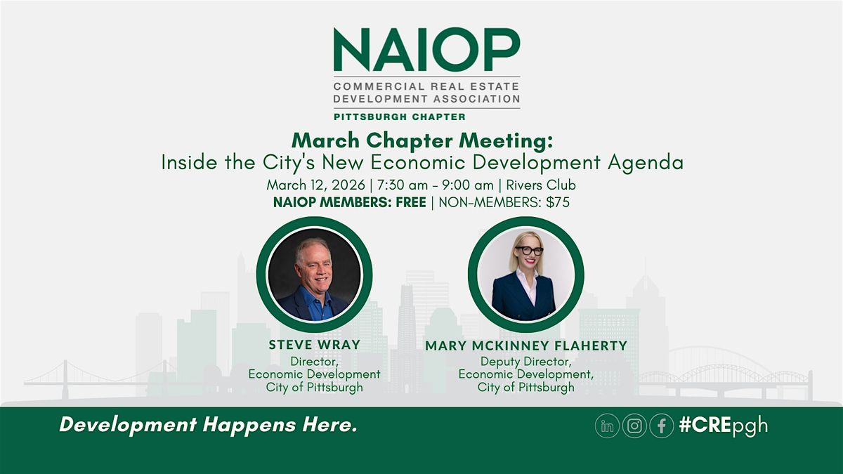 During this timely panel discussion, the City’s senior economic development leaders will share insights into the O’Connor Administration’s strategic priorities, including business attraction, real estate investment, permitting reform, and sustainable regional growth. This program offers a valuable opportunity to hear directly from key decision-makers shaping Pittsburgh’s economic future.