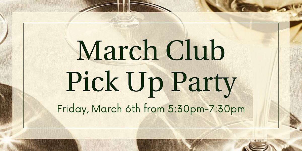 Our March Club Pick Up Party is Friday, March 6th from 5:30pm-7:30pm!