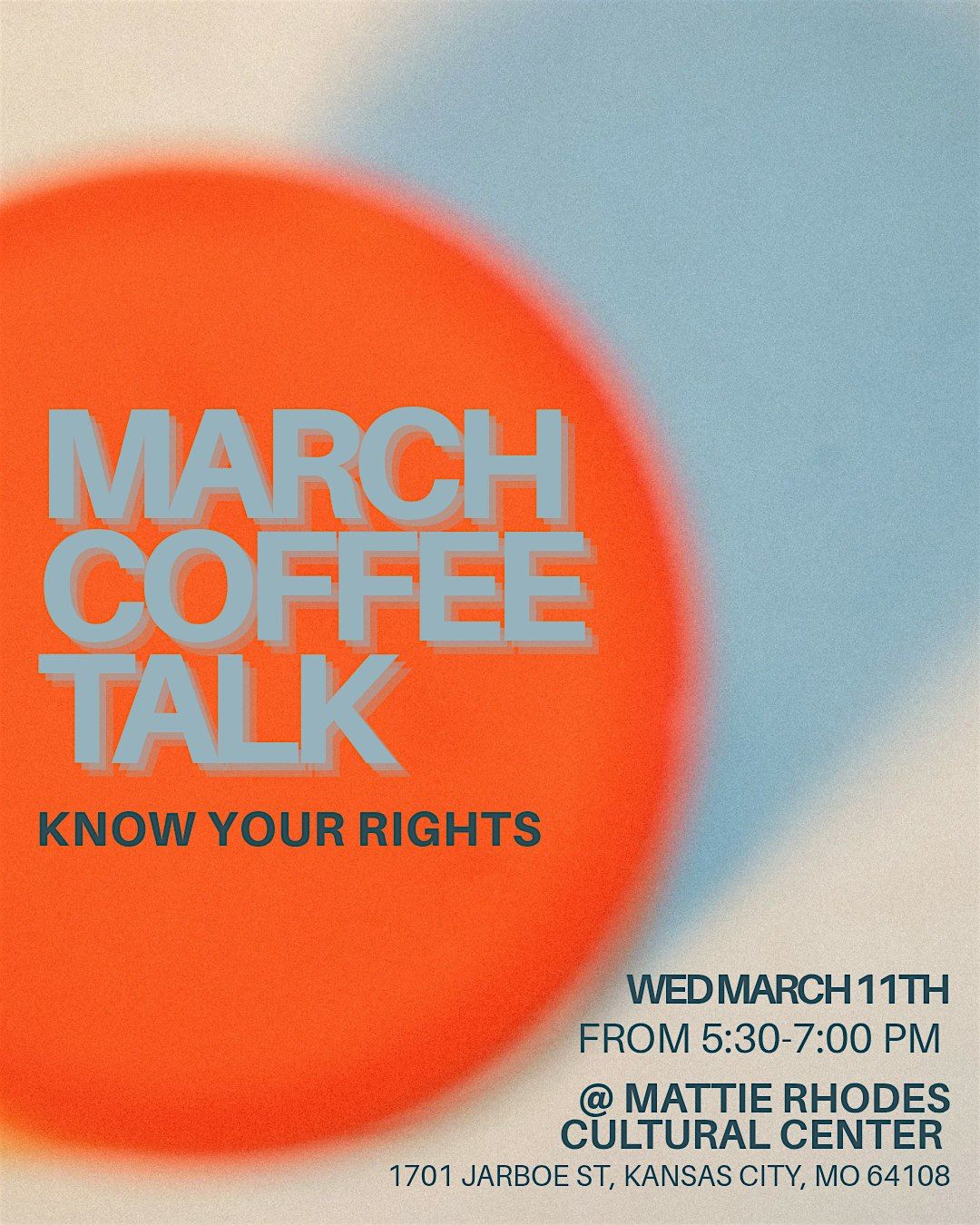 Join us for the March Coffee Talk, where we'll be discussing the legal rights of immigrants and citizens amid the current turbulent state of our country. This event is in partnership with Mattie Rhodes and utilizes their educational resources.