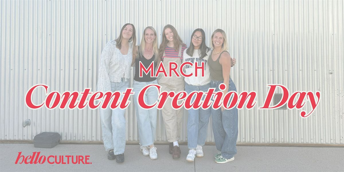 Each month, our Hello Culture crew gets together for a content creation day! We have professional photographers, Jasmine Amber Co and video team at B Real Productions that come and help all of us capture some content to bring into our social profiles for the upcoming month. What is so great about this meetup is that you have 30-60 other professionals that are in that space for an intentional time block with the same mission.