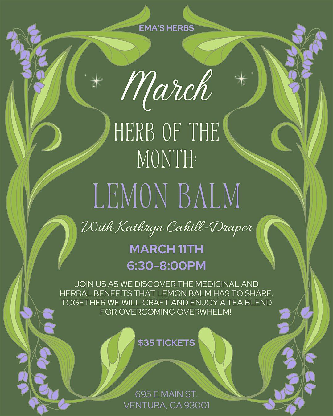 Known by the folkloric name, Heart's Delight, this month we will be reflecting on the lessons of Lemon Balm! This solar plexus supporting herb offers her cooling energy as respite from the firey and occasionally overpowering energy that Aries season has in store. As an attractor of pollinators, Lemon Balm aids us in welcoming in springtime as a season of growth and creativity, while easing overthinking and rumination. Join herbalist Kathryn Cahill-Draper as we discover the medicinal and herbal benefits that Lemon Balm has to share, as we craft and enjoy a tea blend for overcoming overwhelm!