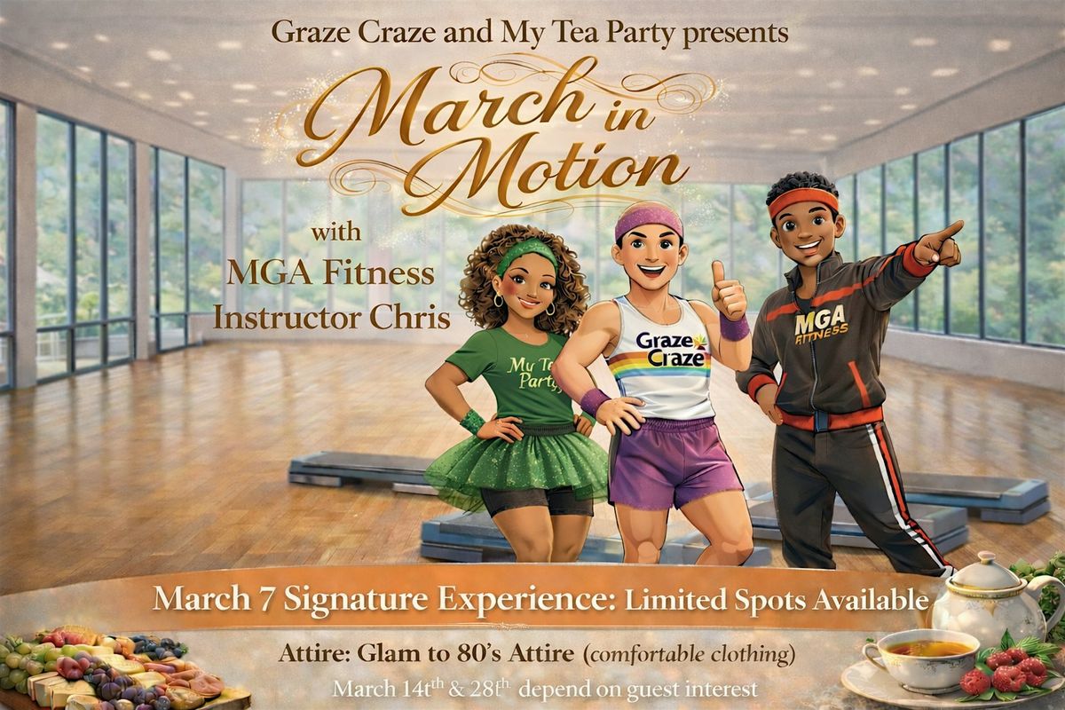 Graze Craze and My Tea Party are hosts and caterers for the March in Motion Step-aerobics class. The instructor is MGA Fitness Coach Chris.About this Event