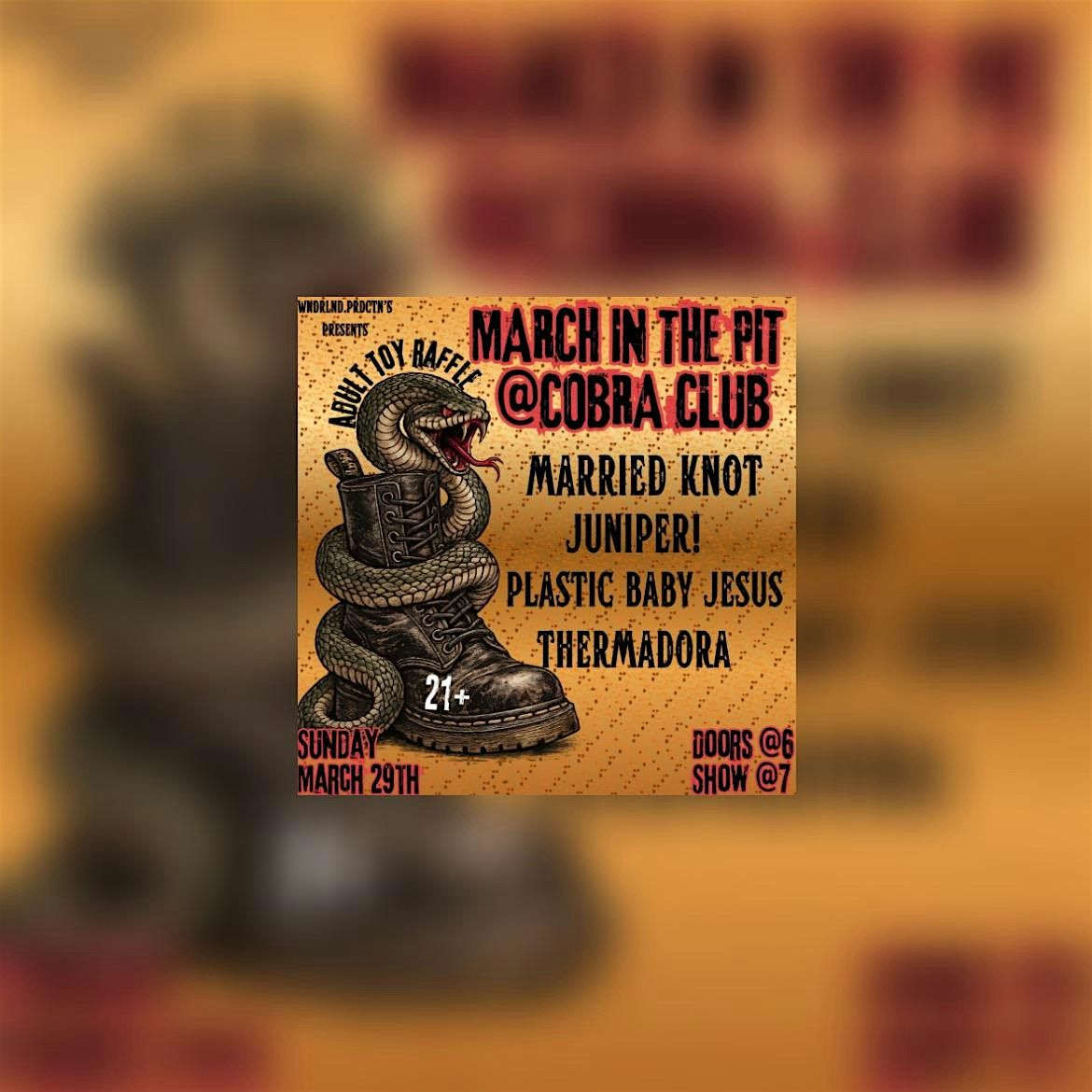 Four sick bands. One unhinged night. Wear your Docs & eyeliner—Plastic Baby Jesus, Juniper!, Thermadora & Married Knot take over Cobra Club.
