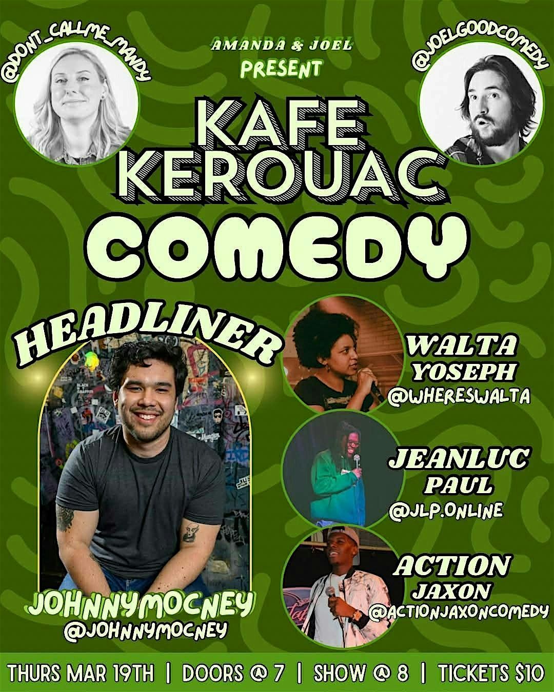 Join us on March 19th at 8:00 PM for a night filled with laughter with some of our favorite up and coming comedians. This month's showcase will feature stand-up performances by Walta Yoseph, JeanLuc Paul, Action Jaxon, with the hilarious Johnny Mocney headlining! Hosted by Amanda Adams and Joel Good. See you there!