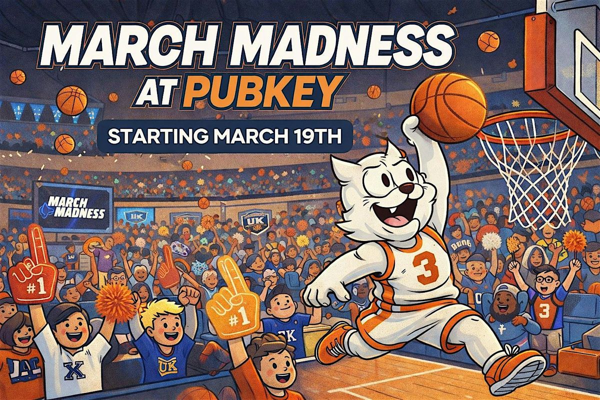 Whether you’re extending your lunch break to kick off the Round of 64, or joining us late-night for the highly anticipated Final Four.... Pubkey will have all of the games running, split across its 10-foot LED screen and TV’s!!
