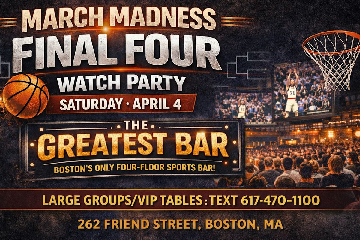 March Madness hits its biggest stage yet with the Final Four, and there’s no better place to watch than The Greatest Bar — Boston’s only four-floor sports bar.