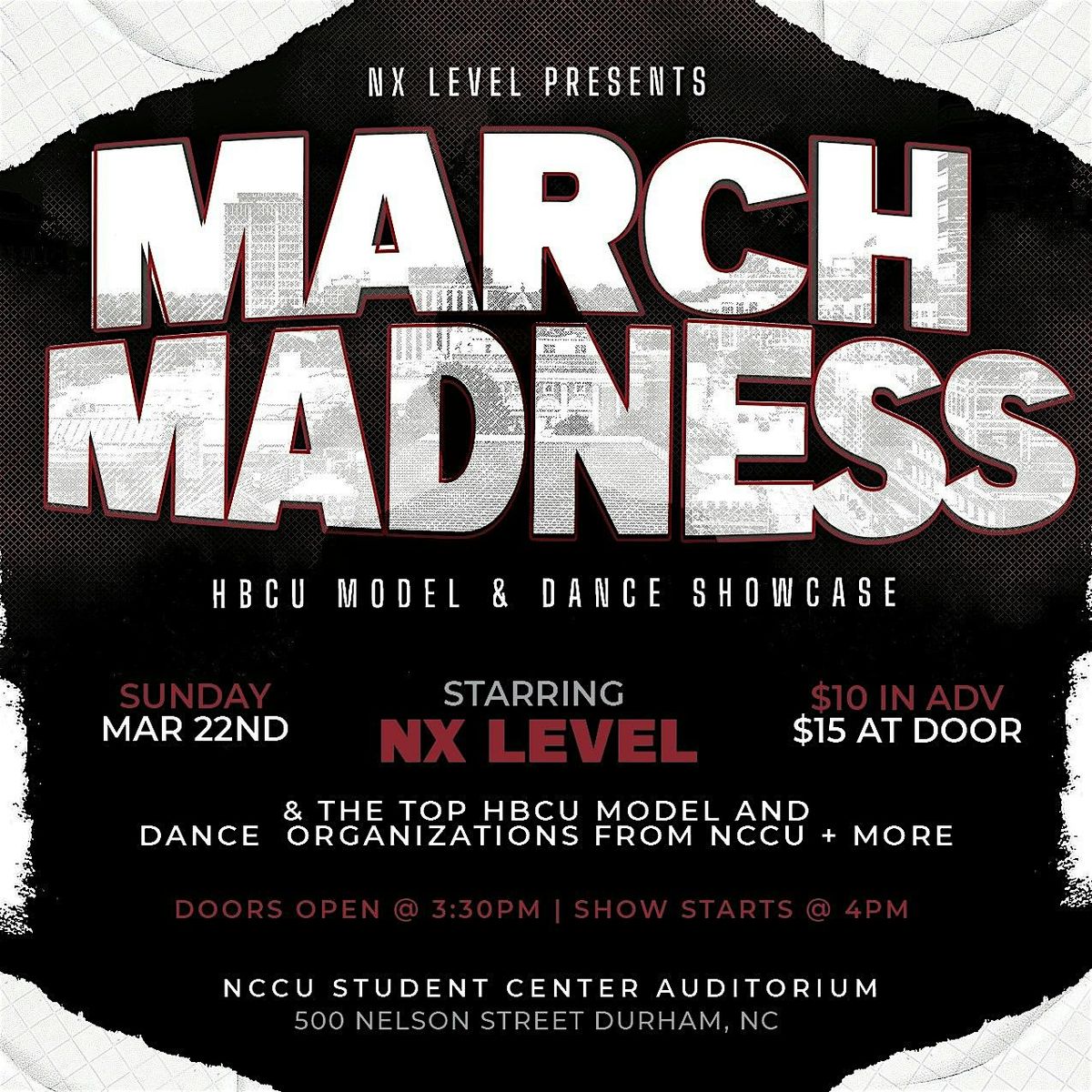 Nx Level presents the March Madness HBCU Modeling & Dance Showcase — bringing together the best HBCU teams across North Carolina and elite Durham community performers for one electrifying night at North Carolina Central University.