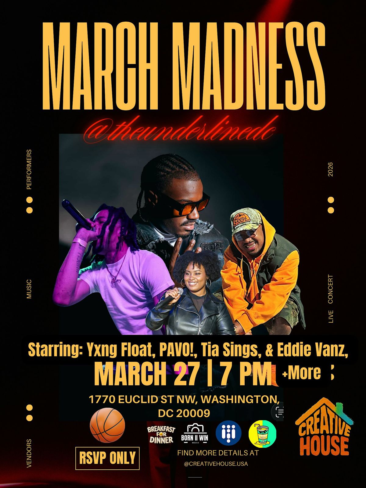 The Bravo Effect returns for a March Madness takeover, bringing tournament-level intensity to the stage. Featuring Yxng Float, PAVO!, Tia Sings, Eddie Vanz, and more, this night is built like a playoff run โ every performer stepping up like itโs game seven.