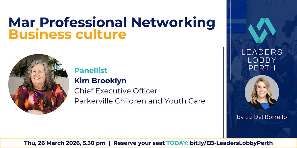 Join me at Leaders Lobby Perth professional networking event, where I'll be in conversation about business culture with Kim Brooklyn, CEO Parkerville Children and Youth Care.