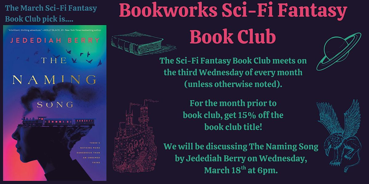 Love Sci-Fi Fantasy and chatting about your favorite books with other readers? Join the Bookworks Sci-Fi Fantasy Book Club! In March, we will be reading The Naming Song by Jedediah Berry.