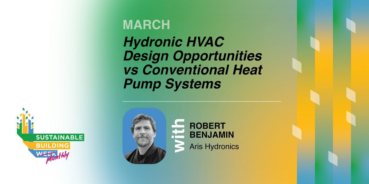 Join us for a deep-dive into low-load strategies for combined hydronic heating, cooling, and domestic hot water in high-performance homes, led by Robert Benjamin, CEO & Founder of Aris Hydronics. This session will explore core first-principal concepts, like why waterโs thermal properties create major advantages over air, while comparing hydronic system opportunities to conventional heat pump approaches. Featuring project examples, system design insights, and a look at next-generation air-to-water applications, this presentation offers practical guidance for designers, builders, and energy professionals.