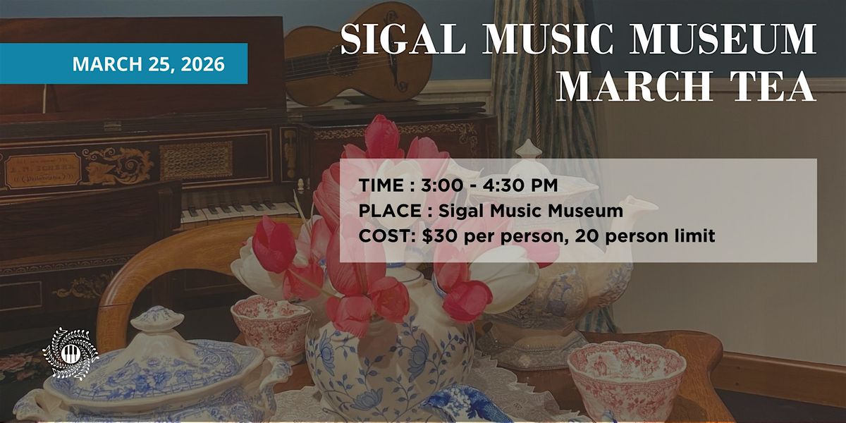 Join Sigal Music Museum for its monthly afternoon tea on March 25, 2026, at 3:00 in the afternoon. Held in the museum, the event will feature savories, sweets, and other fancies! Reserve a table and bring your friends for an afternoon at the museum. Tickets for tea include the price of admission to the museum, so you are invited to explore their exhibits before or after the event.