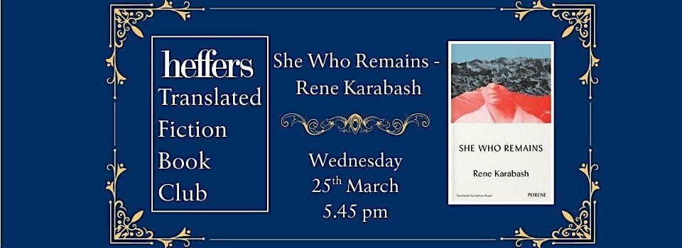 Join us for our Translated Fiction Book Club on Wednesday 25th of March, when we'll be discussing She Who Remains by Rene Karabash.About this Event