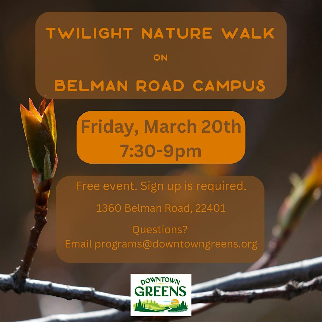 Join our own Janet Douberly at sunset for a beautiful twilight stroll through the fields and forest of our beloved Belman Road Campus.