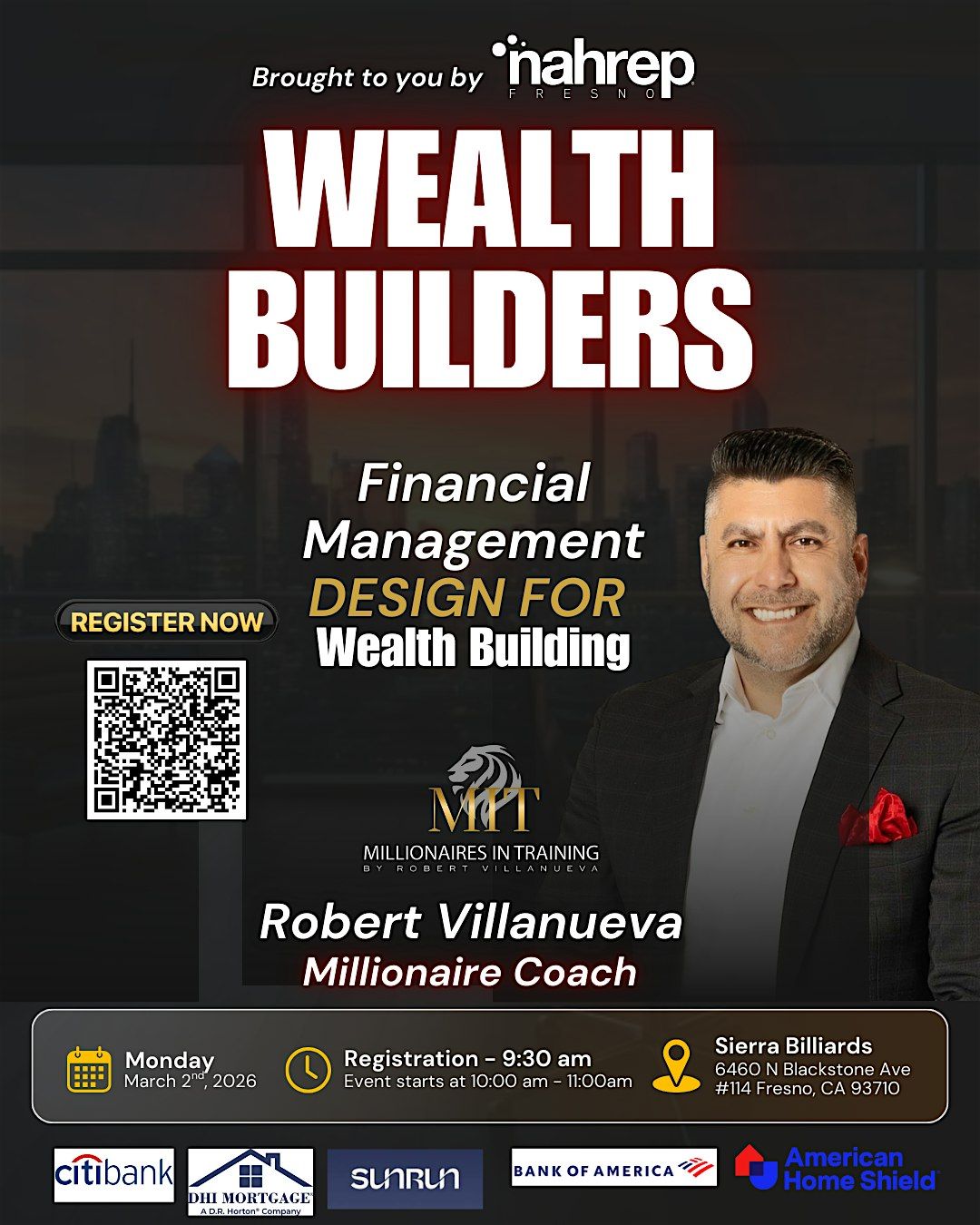 Our NAHREP Wealth Builders Session happens every first Monday of every month at Sierra Billiards, from 9:30am to 11:00am. If you're serious about making 2026 a productive year, then this is a coaching session you do not want to miss out!