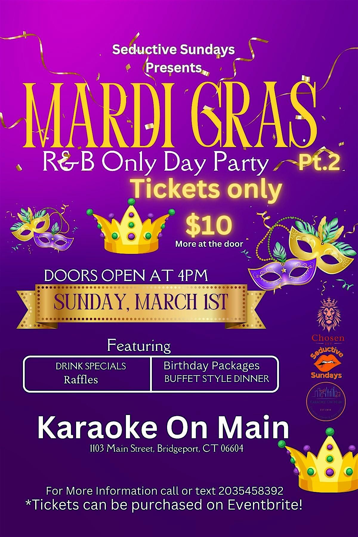 Welcome to Mardi Gras pt. 2 at Karaoke On Main! "Seductive Sundays, R&B Only, Day Party!
