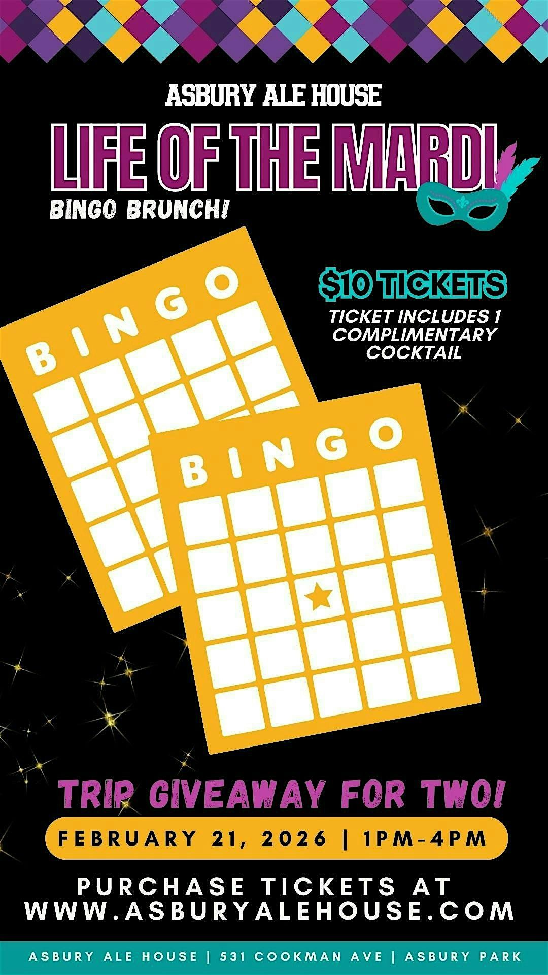 Join us for Life of the Mardi Bingo Brunch, where brunch meets beads, bingo, and big prizes.