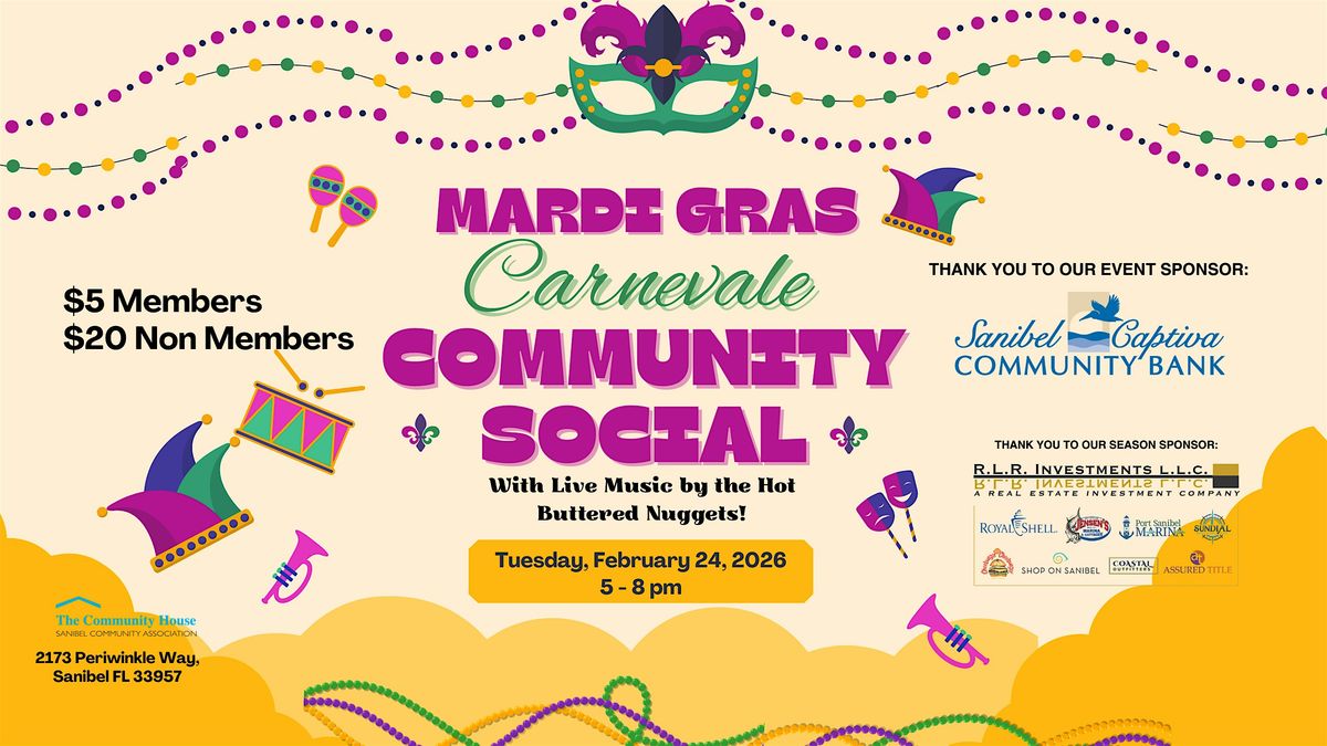 Join us for our February Community Social - Mardi Gras Carnevale themed! Live music with the Hot Buttered Nuggets, refreshments, & cash bar.About this Event