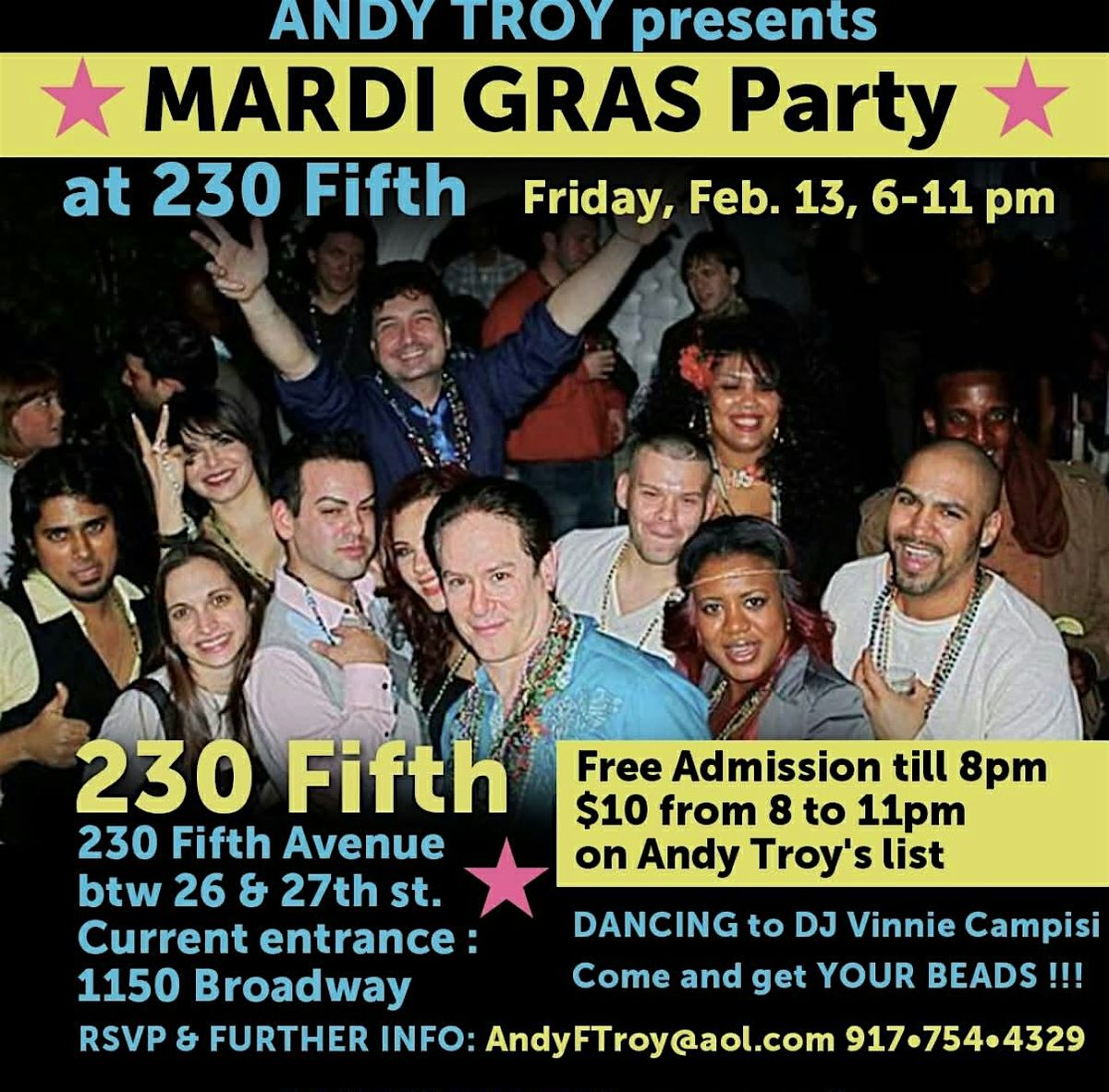 Mardi Gras Dance Party at 230 Fifth, Free Admission till 8 PM!
