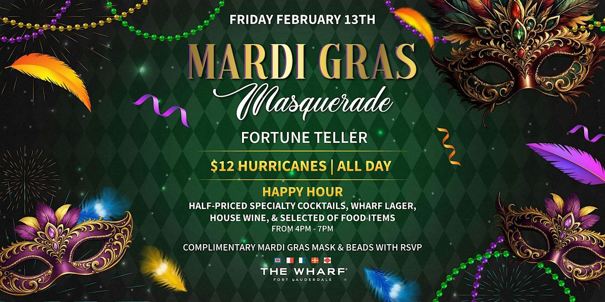 - Complimentary RSVP and receive a FREE Mardi Gras Mask & Beads