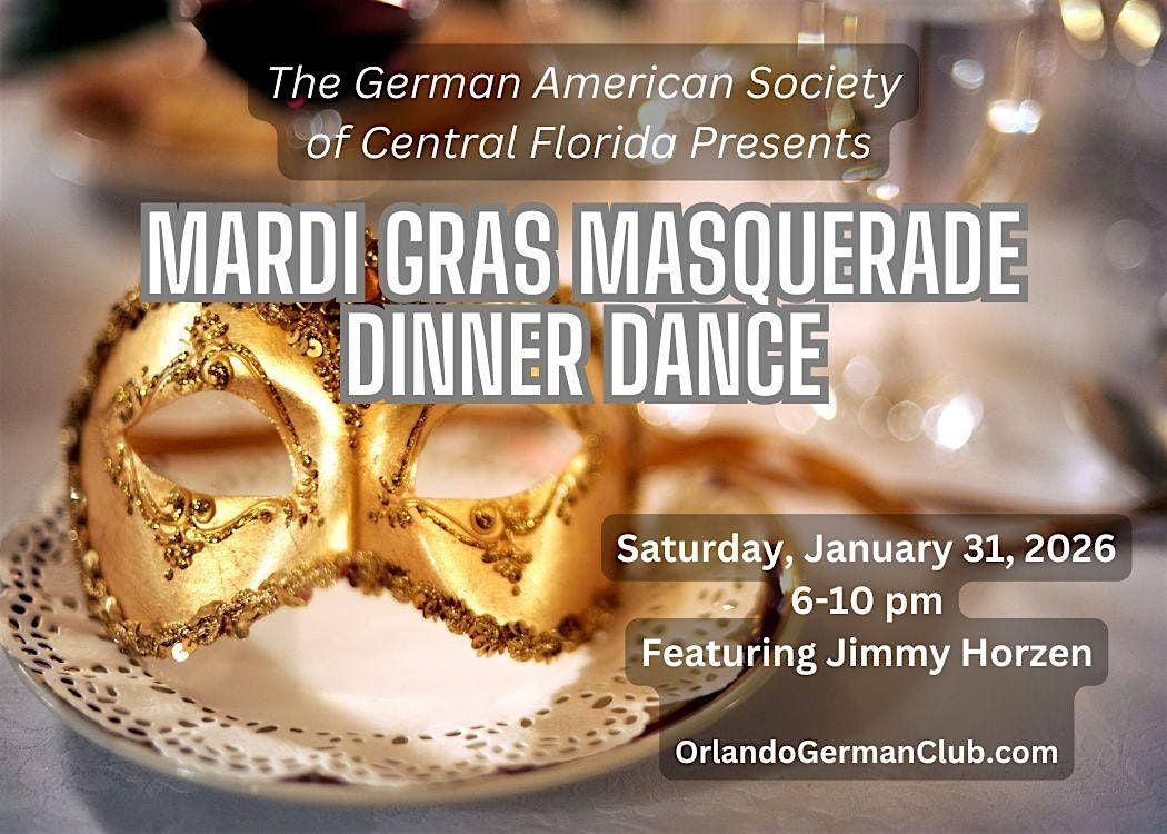 It's time for Mardi Gras - German Style! and lively entertainment featuring dance music by the fabulous Jimmy Horzen, spirited sing-alongs, and a festive costume contest. First Prize $50!