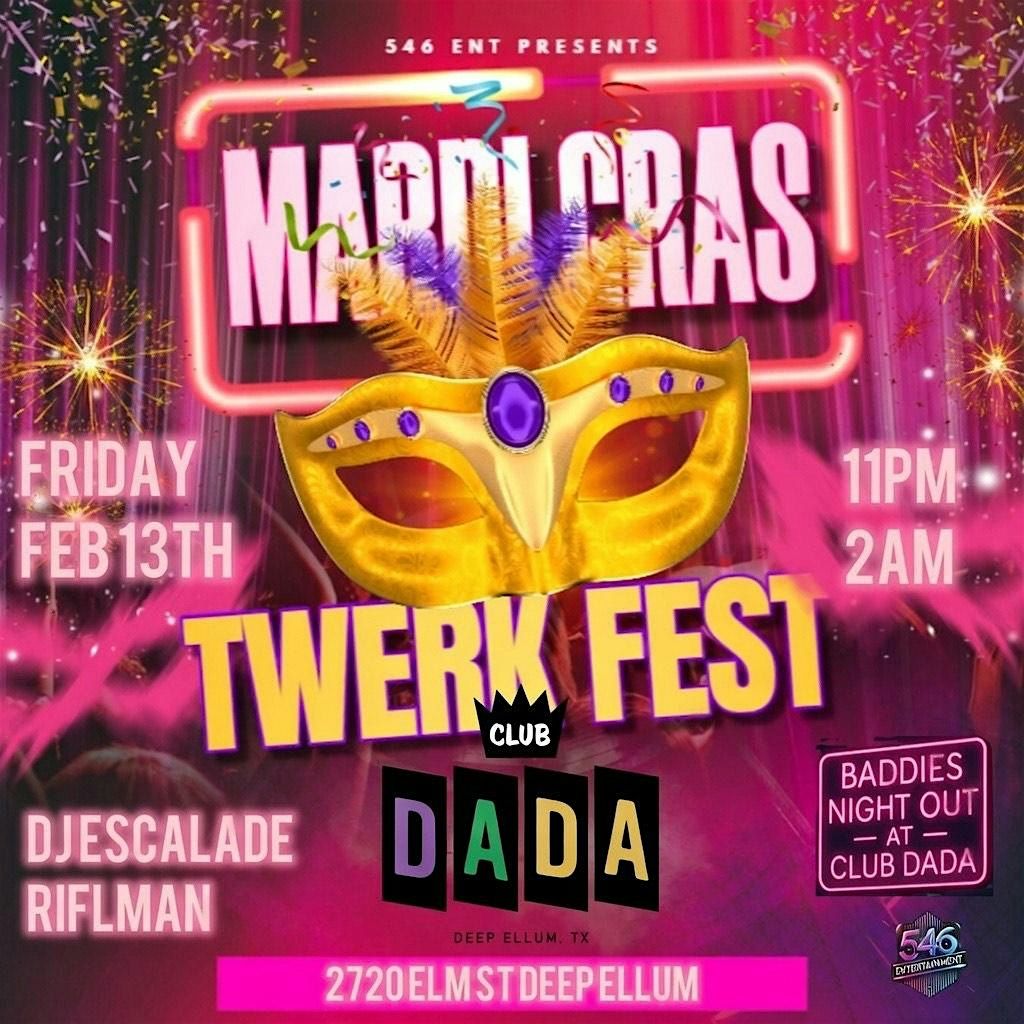 Get ready to shake it at the Dada Dallas for the Mardi Gras Twerk Fest! Join us on February 13, 2026 at 11:00 PM (Central Time) for a night of non-stop dancing and fun. Don't miss out on the chance to show off your best moves and celebrate Mardi Gras in style. Grab your friends and let's twerk the night away!