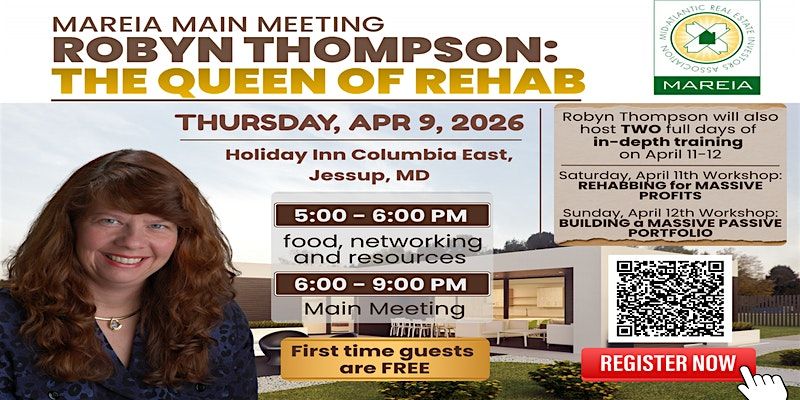 Join us for an exclusive night with Robyn Thompson – “The Queen of Rehab” and learn how to turn real estate deals into serious profits.