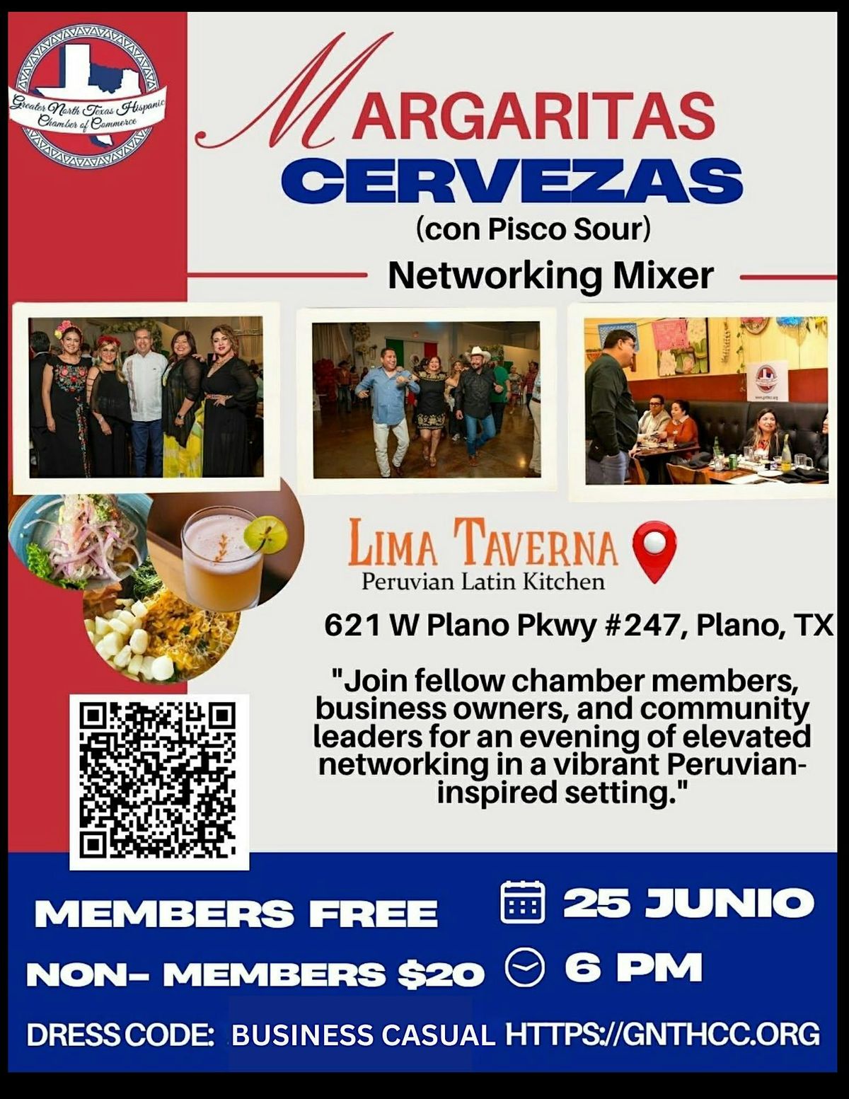 Disfruta de un ambiente relajado mientras creas nuevas conexiones, compartes ideas y descubres oportunidades de colaboración con miembros de la Greater North Texas Hispanic Chamber of Commerce y la comunidad empresarial del norte de Texas.